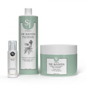 45,00 € TTCLa Gamme The Booster enrichie en l'huile de ricin et acide hyaluronique . Conçu pour réparer un cheveux endommagés il renforce et hydrate intensément la fibre de l'interieur. Les rendants plus forts, brillants et pleins de vitalité . une solution complète pour des cheveux sains et éclatants. 500ML sans sulfate ,sans paraben,ni silicone.