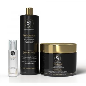 64,00 € TTCShampoing booster + Masque booster + Sérum l'éclat royal » L’éclat Royal » le sérum protecteur avec sa formule complète qui associe les bienfaits nourrissants de la protéine de soie , l’hydratation de l’huile de rose et la force restauratrice du collagène pour des cheveux soyeux , brillants et plus résistants. Composition: cyclopentasiloxane, dimethiconol, hydrolyzed silk ,collagen, rose flower oil, parfum (fragance).